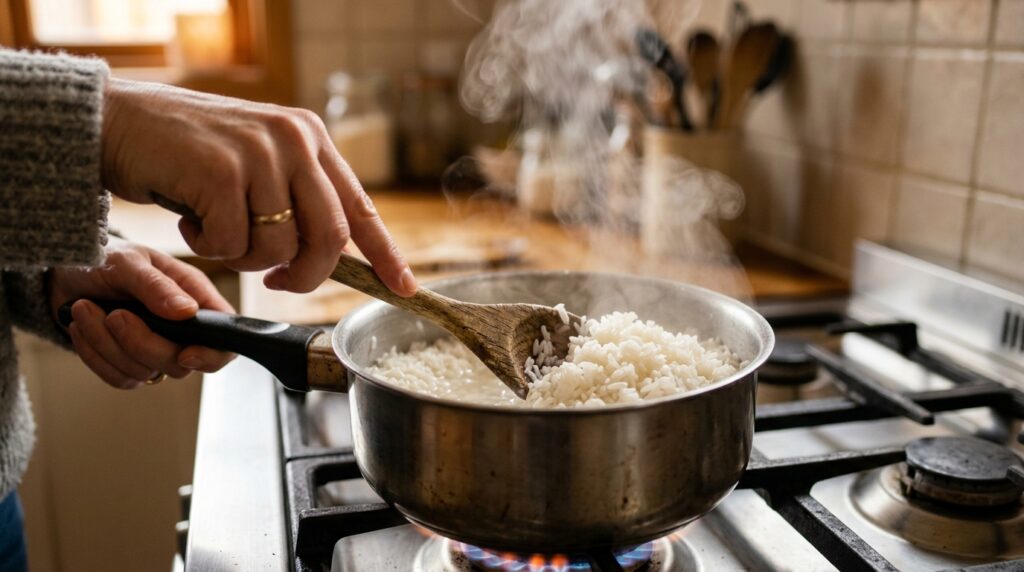 - Cozimento Extra: Deixe o arroz cozinhar um pouco mais do que o normal (até ficar bem macio). Isso facilita muito a digestão para o cão.