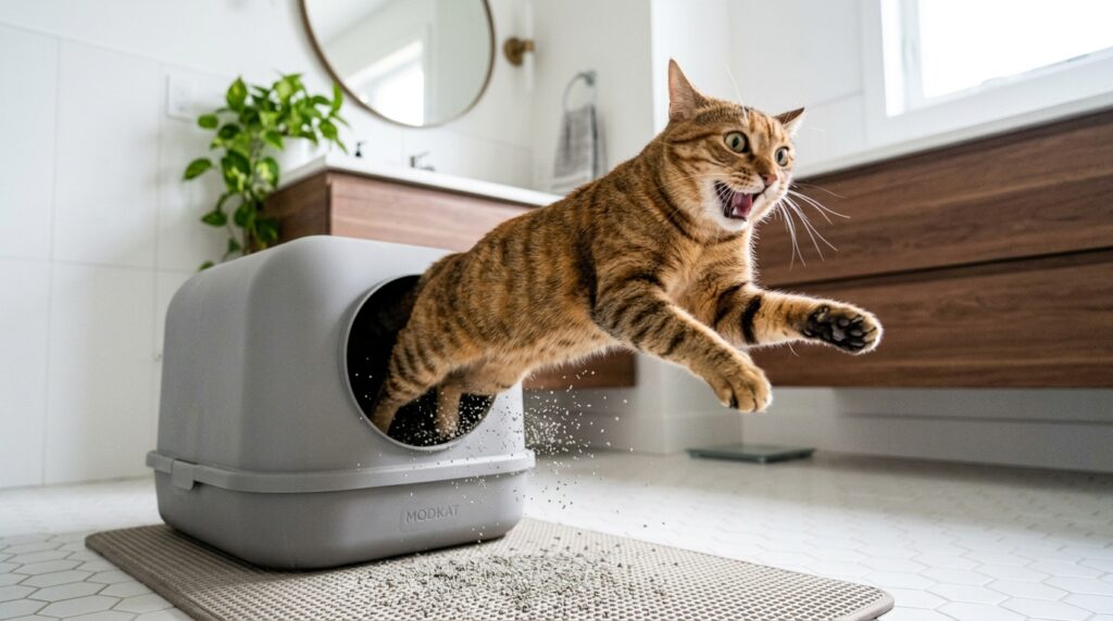 A evacuação pode estimular o nervo vago, o que em alguns gatos gera uma sensação de euforia ou alívio intenso (às vezes chamada de “poo-phoria”). Além disso, o instinto ancestral dita que, após deixar um rastro de odor forte (fezes), o animal deve se afastar rapidamente para não ser detectado por predadores maiores. É a ciência e a sobrevivência encontrando a comédia doméstica.