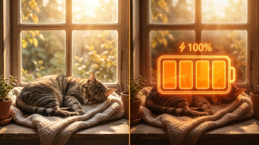 Os gatos são mestres da conservação de energia. Eles dormem, em média, de 12 a 16 horas por dia. Durante esse tempo, o corpo deles está estocando combustível para o que a natureza pretendia que fossem caçadas intensas. No ambiente doméstico, onde a comida aparece magicamente em um pote de cerâmica, essa energia não tem para onde ir.