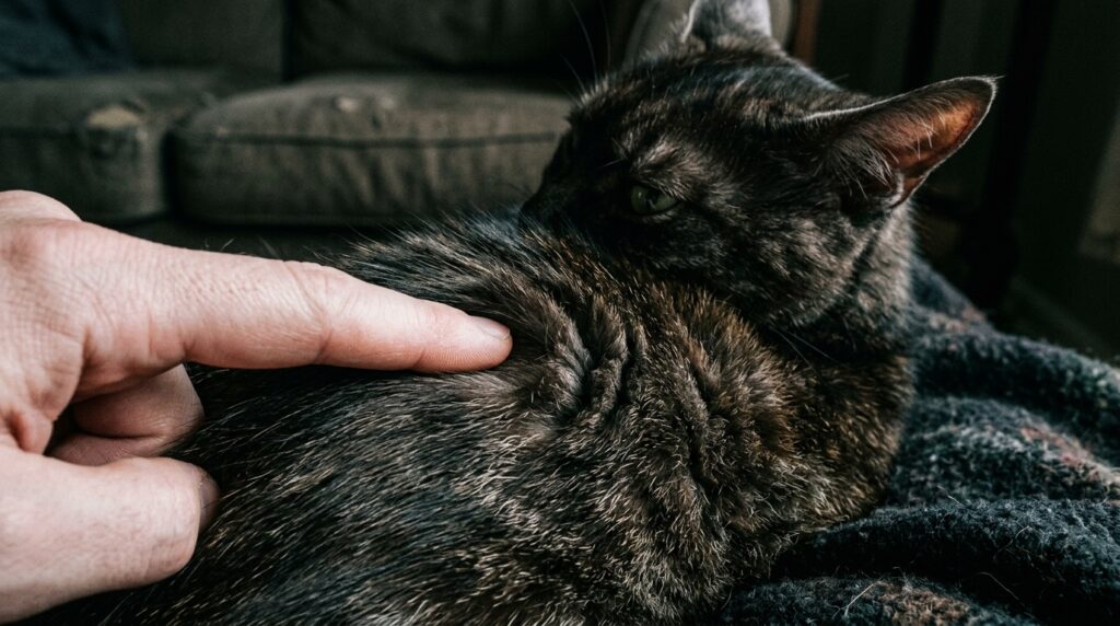 - Pele Trêmula: Sabe quando a pele nas costas do gato parece dar um pequeno salto? É o sistema nervoso dele dizendo “chega”.