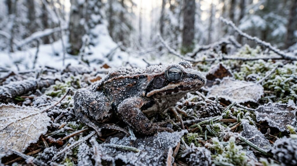 Este anfíbio do Alasca consegue “congelar” durante o inverno. Seu coração para de bater e ele vira um bloco de gelo.
