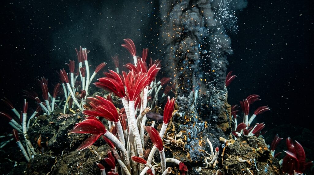 Vivem a quilômetros de profundidade no oceano, próximos a fendas hidrotermais que cospem água rica em ácido sulfúrico e calor extremo.